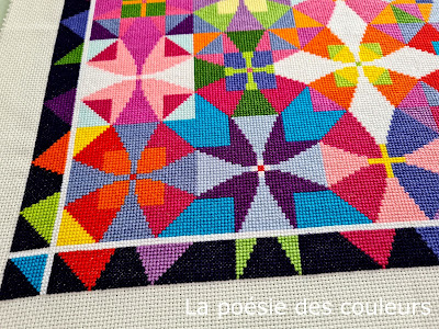 Voilà elle est terminée entre deux rendez vous ou en attendant la famille , le soir pour m'occuper pendant un film avant de reprendre le patch ,je l'ai brodée en un temps record .C’était addictif dès que je la voyais sur la table de salon je ne pouvais pas m’empêcher de la regarder et la continuer.